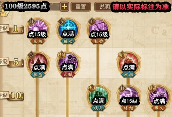 技能点也是不够的,卡二这里的状态有点多,吃掉了很大一部分技能点。奥义点满后,其他的小技能我们可以平分到15级。