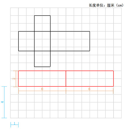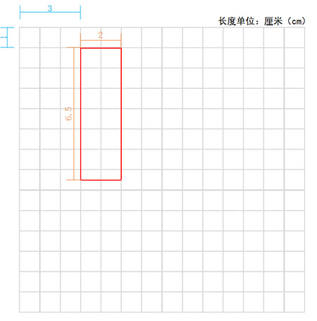 在网格内,图示位置,画一个长2高6.5厘米的长方形
