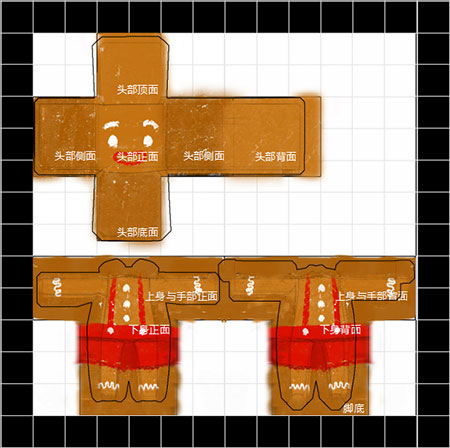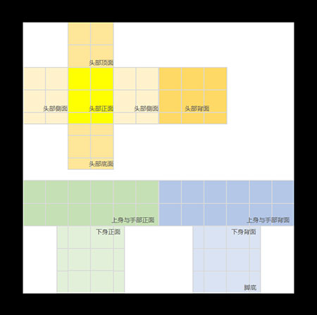 将最终框选区域内的方格和多余线条擦除干净,框选区域就是皮肤绘制的区域