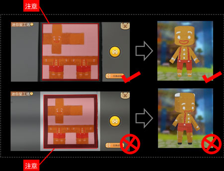 打开迷你世界进入商店,点击迷你星工场启动相机,注意需要将黑方格的内边缘对齐拍照区域