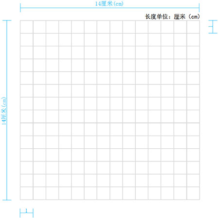 在空白纸上画一个,由边长1厘米小方格组成的14x14厘米的网格