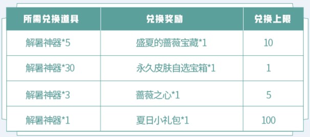 解暑神器*5,盛夏的蔷薇宝藏*1,兑换上限10个
