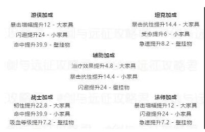 这个是图鉴家具给的属性,其中战士属性里给的是韧性,只要凑齐3个金色大家具,即可获得22.4的韧性,家具的属性是可以带到团本中去的,此次团本因家具提升最大的职业,当之无愧是战士了。