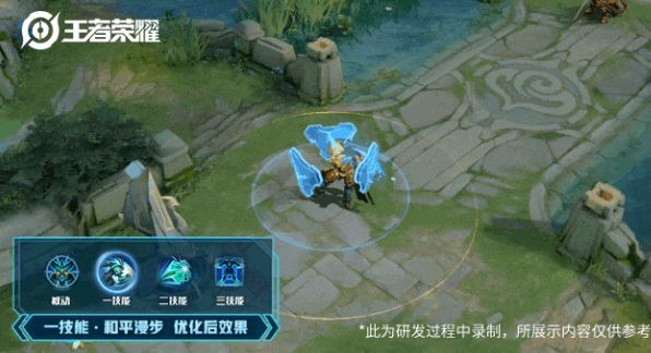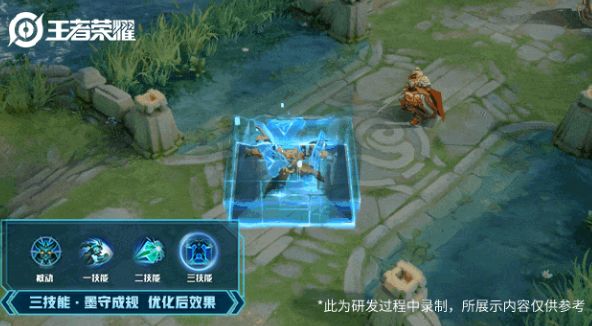 一技能位移之后,会有一段虚影的效果,而墨子周身会有三块能量板代替原先的护盾,将机甲的元素融入到皮肤当中,更加符合墨子英雄的特点。