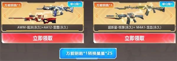2.若抽到万能钥匙,可选择自由兑换奖励或分解为25颗星星;