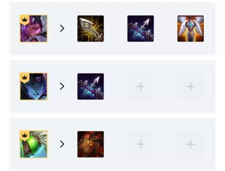 开局我们先抢大剑,拳套,反曲之弓这三件万能装备,如果都抢不到,就退而求其次抢腰带锁子甲吧。我们优先还是考虑做无尽轻语,如果前期传送门,救赎,红BUFF胡了,也可以直接合成用于过渡。