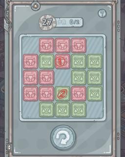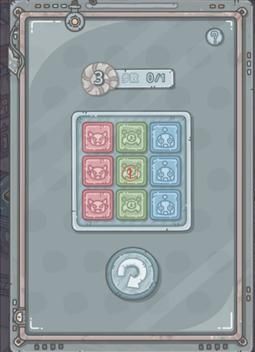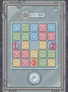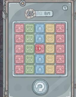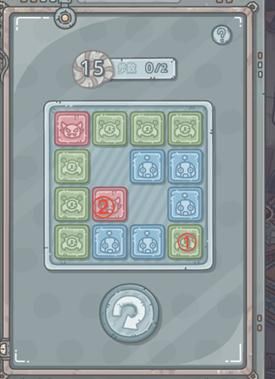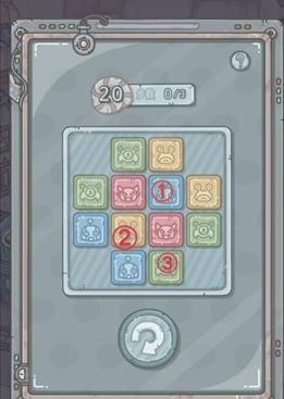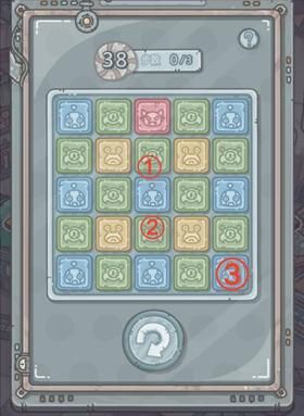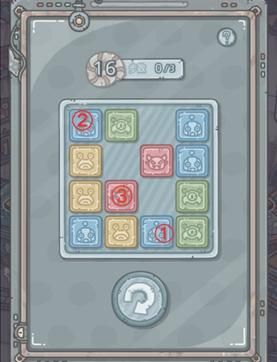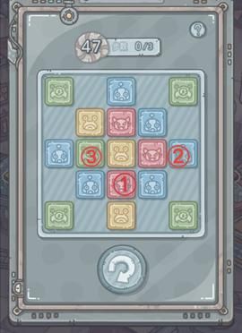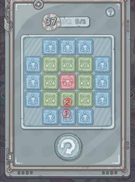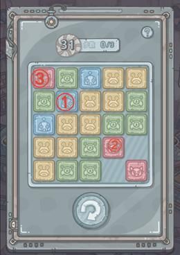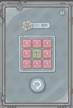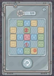 这个小游戏一共有50关,关卡类型有2*2/3*3/4*4/5*5,这四种难度。玩家需要做的,就是点击方块变色。