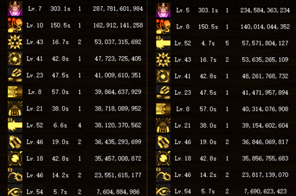而对比两把武器对技能的提升率来看,除了激光炮有提升,其余基本差不多,差距非常小。