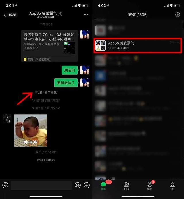 1. 群聊内,被「拍一拍」的提醒文字加粗了。