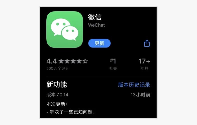 微信又更新了,iOS版近日迎来了一次更新,版本号是 7.0.14,更新描述显示,解决一些已知问题,来看看有什么变化吧!
