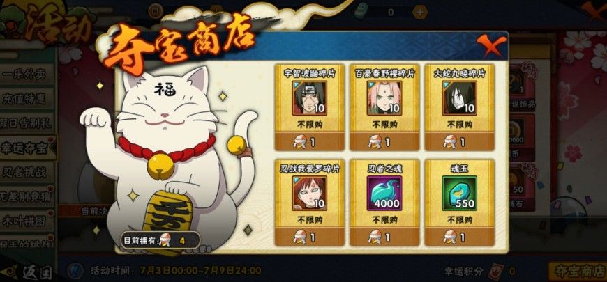 火影忍者手游幸运夺宝多久出一个次?2020幸运夺宝忍者上架规律
