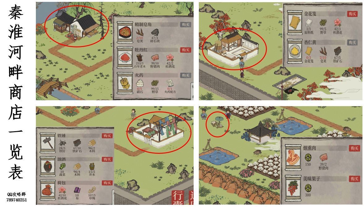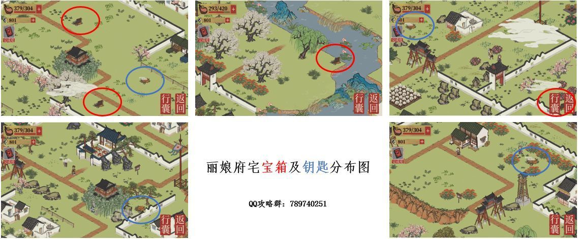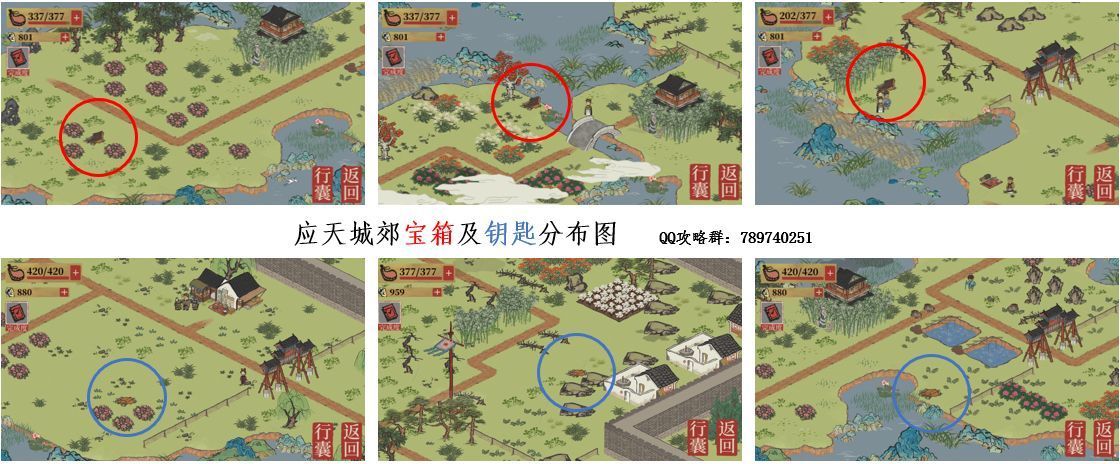 应天府驿站探险三地图(秦淮河畔、应天城郊、丽娘府宅)宝箱、钥匙、商店分布图