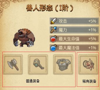 每种形态的装备 前3种为普通装备 最后一种为稀有装备