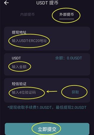第三种变现方法:点提币后,点外部提币,把币提到你熟悉的交易所然后卖掉。其实跟第一种方法一样,只是没有用默认的交易所。默认的那个交易所USDT价格略微低一点。