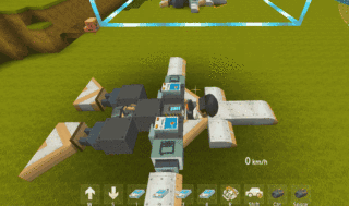 这样一个简易的飞机就制作完毕啦!生成载具后尝试一下,首先坐上飞机,按下推进按键: