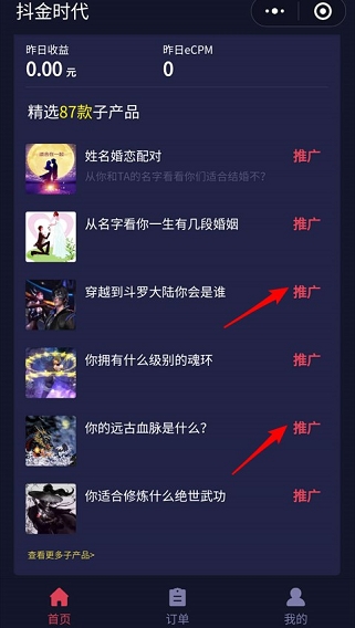 进入抖金时代后台点开推广的小程序查看具体收益(抖音视频挂小程序产生的收益T+1结算,第二天提第一天的收益,提后每天十点以后陆续发放,请耐心等待。