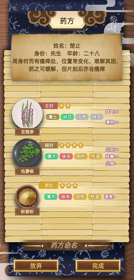 古代人生药方完美配置该怎么组合呢?游戏中病人将会出现止血、益气、寒热交替等症状,只有对症下药才能完美的解决问题,可能很多小伙伴还不知道该怎么进行药方搭配,今天小编就为大家带来古代人生药方攻略:止血、益气、寒热交替药方配置,希望大家能够喜欢。