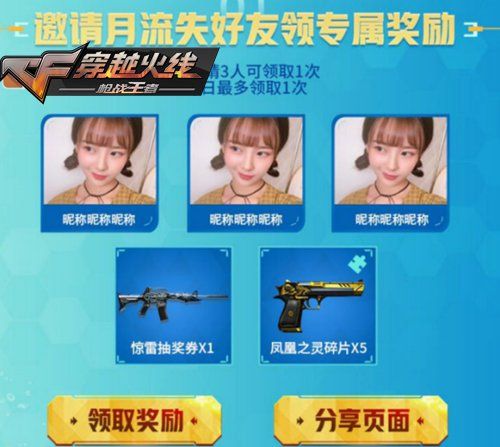 除了分享活动界面给好友,小伙伴们还可以邀请老兵回归,每邀请3名月流失以上玩家就可以领取一次惊雷抽奖券x1和凤凰之灵碎片x5,不过每日最多可以领取一次,小伙伴们要合理规划哦,不然就浪费邀请的机会啦!获得的雷神抽奖券小伙伴们可以在游戏活动界面参与抽奖!