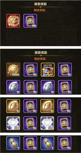 2、大小宝箱探索奖励汇总
