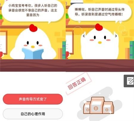 今天的问题是:小鸡宝宝考考你,很多人听自己的录音会感觉不像自己的声音,这主要是因为?