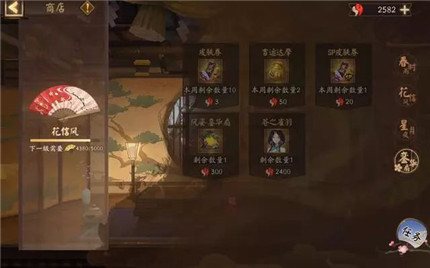 最后等级最高的阶段,皮肤券还是能换10个,但是这里追加了SP皮肤券,虽然每周只能换1个,而且要20勾玉,但想想也不算亏,毕竟SP皮肤一年能追加一款就不错了,值得入手的SSR的SP皮肤也就那么几款,平常大活动都会给,所以不着急。最后就是之前错过的八百最漂亮的皮肤,可以通过最高等级的商店入手,需要消耗2400勾玉。