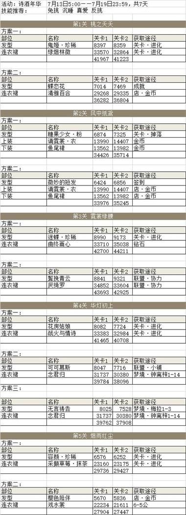 奇迹暖暖诗酒年华活动攻略:诗酒年华活全关卡高分搭配一览表