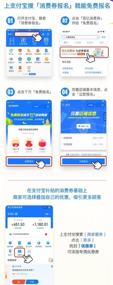 全国消费券不设门槛,再小的店都能用。但前提是商家要先报名,目前正处于商家免费报名阶段,还剩最后大半天,各位老板抓紧了!