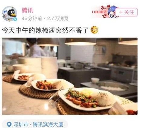在事件迎来反转后,腾讯官方B站账号发表动态称,“今天中午的辣椒酱突然不香了”。