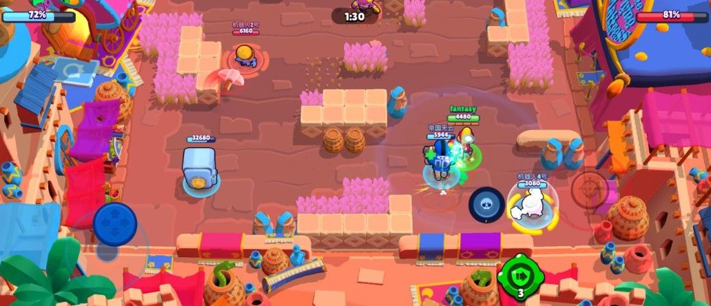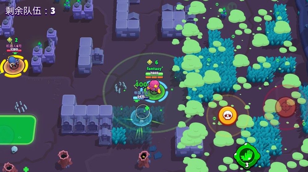 主要是罗莎铺设草丛从侧边绕后后进行偷袭,其余两个英雄在正面压制。具体在哪个图使用之前的模式介绍中已经详细的介绍过。
