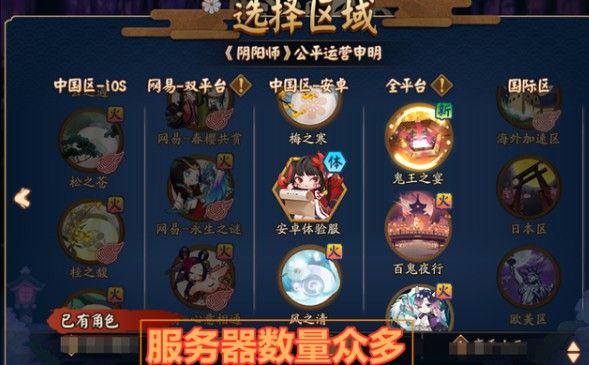 阴阳师有许多的服务器,其中还分为各种渠道服和官服两种,官服就是在官网下载的客户端,而渠道服则多是玩家们在各自的手机商城中下载的,因此玩家们虽然玩的是同一款游戏,但是数据却不能随便转移,阴阳师中的渠道服一般都是阴阳师官方跟各大手机厂商合作推出的,当然由于当年阴阳师在刚公测之时授权了许多运营商,所以除了各大手机厂的渠道服之外还有许多不知名的渠道服。