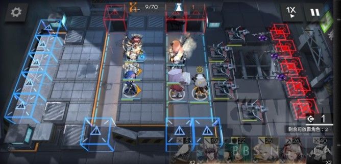 开局之后的一波,顺序是塞→能→蓝→夜,不用开技能。如果你没有忘了开桃极的技能的话,这里应该可以很顺利的以赫→银这个顺序拍下这些干员。这里也不需要开技能,通常而言250的蓝毒加上银灰可以恰好A死这个无人机。这个时间点,请务必启动蓝毒的技能,老爷子的技能也直接用,不然会漏无人机。