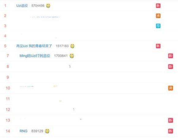 在Uzi个人及RNG战队官博发布了退役声明后,“Uzi退役”迅速登顶微博热搜,“再见Uzi 我的青春结束了”“Ming陪Uzi打到退役”“RNG”“LPL006号选手”四条热词分别登上微博热搜的第5、7、14和27名,成为今天微博最受关注的热点事件之一。