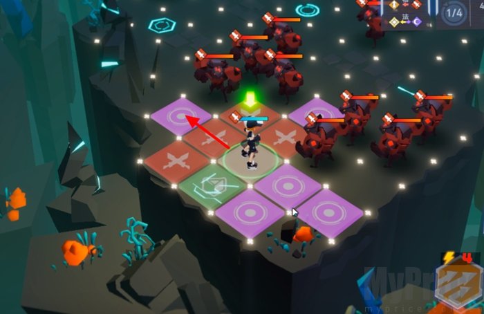 往前走一格,打掉下方3个敌人。