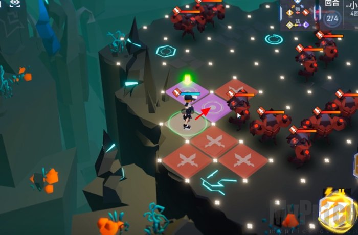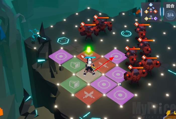 往上走2格,先把上方3个敌人打掉。