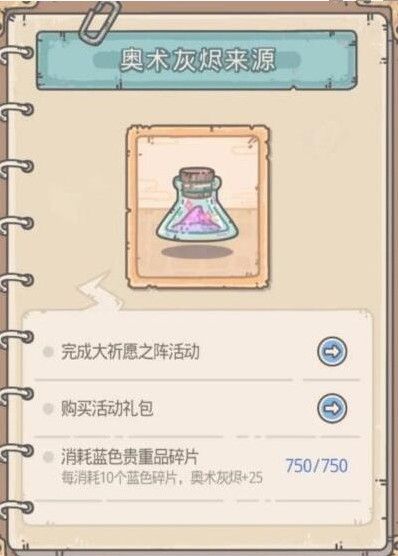 每消耗10个蓝色碎片,奥术灰烬+25。
