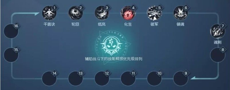 化生流连招:千面诀—轮回—纸岚—化生—破军—镇魂—(魂刺—破军—镇魂—魂刺循环)。