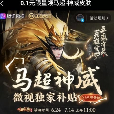 王者荣耀微视0.1元领马超神威皮肤怎么领取?马超神威皮肤0.1元获取地址