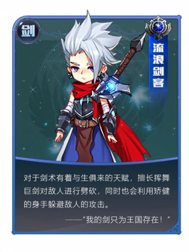 某日,一位注定不平凡的勇士降生了,Ta出生于因特塔尔的某个小村落,对于剑术有着与生俱来、令人惊叹的天赋,能够轻松地挥舞着巨剑,向敌人挥砍而去,造成杀伤,不仅如此,他的身手也异常矫健,能够在战场上自由穿梭,敏捷灵活地躲避敌人的攻击,令敌人头痛不已,但当Ta成为自己的队友时,却能令人无比安心——对于想要守护的人和事物,Ta绝不推脱,会毫不犹豫地拔刀相助,强大的实力是友军信心的强心剂。