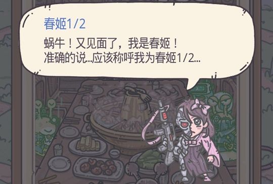 最强蜗牛前期玩家会遇到了一个非常可爱的妹子新手接待员,叫做春姬,可是却被一个拿着激光剑的人给一刀砍成两半了,那么这个角色会不会后面再出现呢?毕竟这个NPC还是有不少玩家喜欢的。