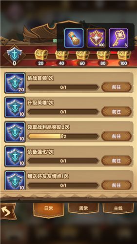 1、每日活跃任务产出:玩家们每天在这边完成我们的每日任务,将这个每日任务的活跃度打到一百我们就可以在这个宝箱中获取到3把神匙的奖励。