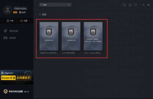 继续用奇游加速qi加速“Epic”相关分区,顺利连入平台: