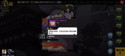玩法奖励分为五档,在探索值达400、1100、1500、1700、2050时,员工会各获得一个异人探秘礼包,内含未送达的心意x8、法器精魄x8。每日完成玩法共计可获得40未送达的心意(400异人亲密值),40法器精魄(法器升级材料)。