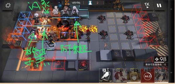 一阶段位置如上图,爱国者进范围阿米娅黑开技能,打死后距高台两格(记得撤黑换小火龙)