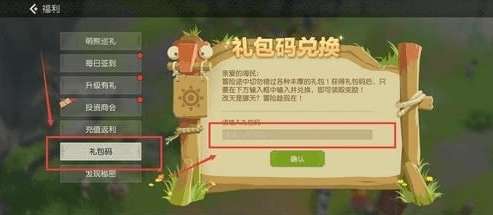 2、在福利界面可以看到有一个【礼包码】的选项,点击该选项即可打开礼包码兑换界面,输入获取的礼包码点击下方的兑换即可