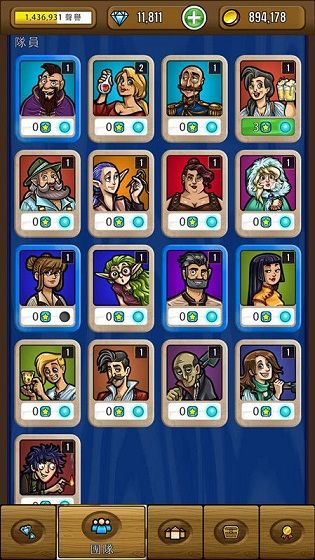 点击团队图标进入队员界面,可以看到所有队员列表,分为上下两块,属于你的队员和还没解锁的队员(非队员)。点击每个队员的图片可以查看该队员可以生产的物品以及技能点。技能点可以通过开宝箱获取,每一个员工的技能点是独立的,不存在分配问题。前期开启的员工比较少,后期玩家可以根据员工可制作的物品选择不同的员工,从而针对性的提升使用的员工技能。