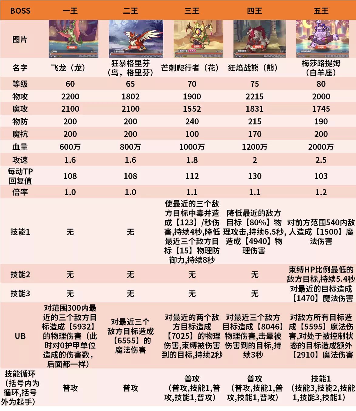 ③ 为什么没有提到法术输出呢?因为“破甲”这个属性能让队伍的伤害有很大提升值得各位骑士注意的是,与BOSS之间的战斗并不需要自己一次击杀,BOSS血量为行会共享,所以可与队友共同击杀或3次累计伤害击杀BOSS。考虑到各个骑士的公主练度和所有数目都不尽相同,因此如想追求更高分数,建议骑士们听从所属行会的会长指挥。毕竟团队战是一项较为偏向于团体性的活动,最后的成功离不开你们行会中每一个人的共同努力。