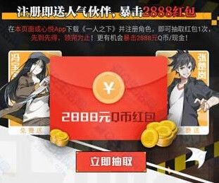 在手q界面或者心悦app下载《一人之下手游》并注册角色,即可抽取红包1次,先到先得,领完为止!更有机会暴击2888q币/现金。