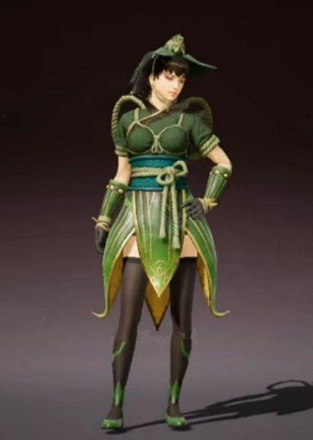 这套新时装就是清香五月粽,整体是用的是粽叶为设计元素,配色也是绿油油的,而且居然还能够看到有捆绑的绳索。虽然这也是在模拟现实当中捆粽子的情形,但是不得不说在女角色身上有这种设计还是非常的大胆的。