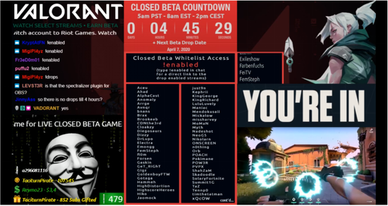valorant内测资格在什么地方能获得?这款游戏自从曝光以来就一直有很高的的热度,封测通道虽然还没有关闭,但是玩家们对于内测的资格已经有很大的需求了,封测资格是观看Twtich直播获得,内测资格下面或有介绍获取的方法。