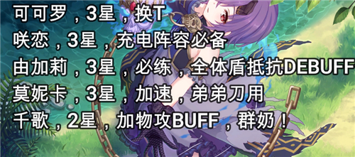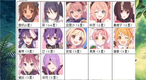 必练角色名单:深月、黄骑、暴击弓、猫剑、狗、妈、病娇必须三星,亚里沙、黑骑有条件可以母五星,雪哥尽量保持两星不动。